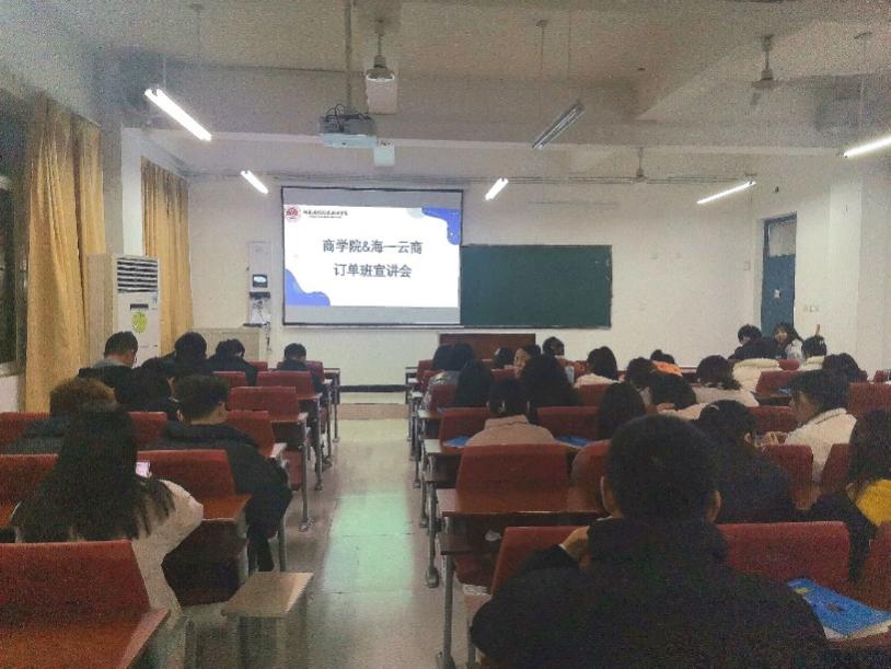 为加强学校与企业的合作,促进员工和企业之间的交流,提升员工技能并加深对行业的了解。皇冠APP体育于11月30日下午,在东校区教学楼102及203开展了海一云商集团订单班线上宣讲会。