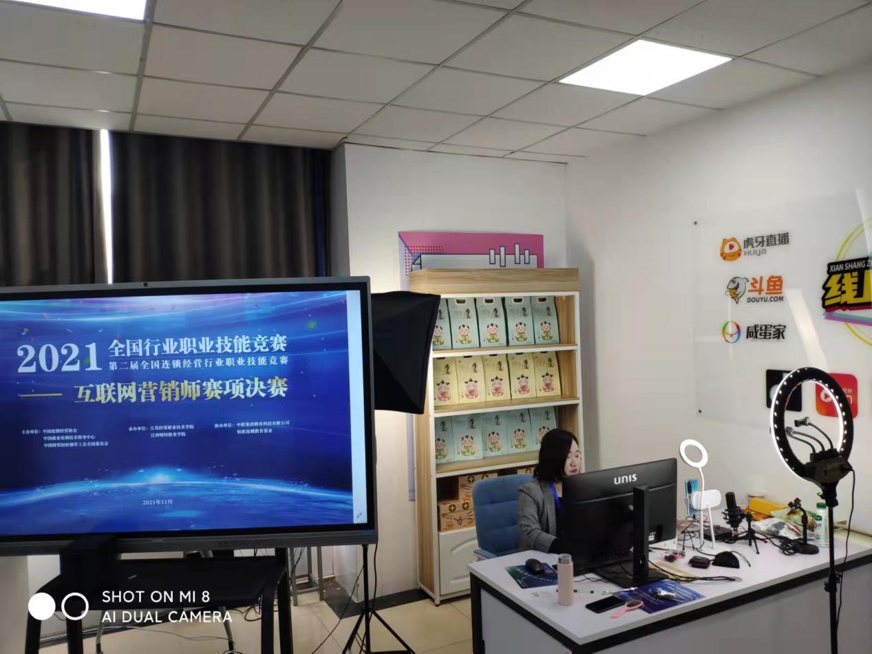 在激烈的竞争中能取得这样的好成绩,与学校的“双高”建设分不开,与皇冠APP体育日常扎实的工作也分不开。在了解到竞赛要求发生变化后,皇冠APP体育第一时间作出反应,孙勇院长和周燕书记全力为比赛调配人力、物力,协助克服各类软硬件困难,用最快速度将直播间改造成赛场,为参赛职工提供了优越的赛场环境,让老师可以无后顾之忧全力投身比赛。