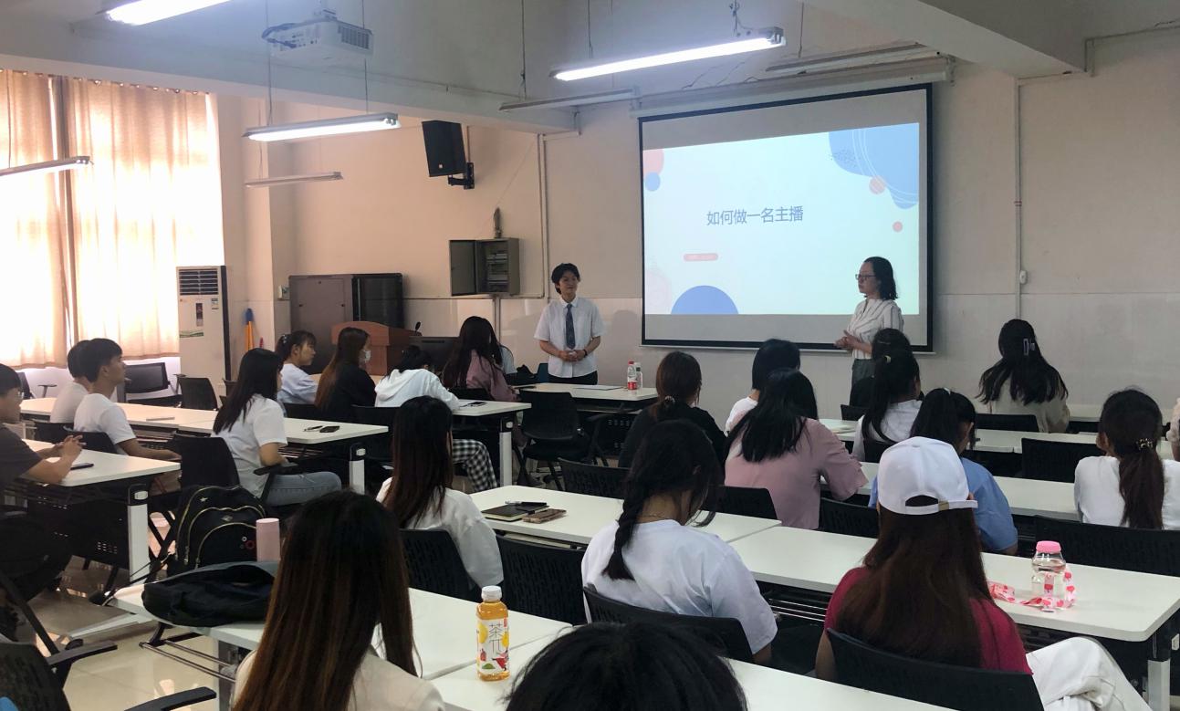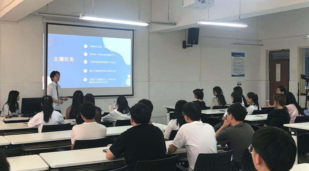 为满足企业对直播人才的需求,提供精准人才服务,多形式、多渠道探索电商主播人才培训模式,提升主播销售专业素养,壮大电商直播人才队伍,皇冠APP体育电商工作室于5月27日下午在E602开展了电商直播培训。本次活动邀请了来自海一云商的优秀老师,他给同学们进行了一场“如何成为一位优秀主播”的主题培训,皇冠APP体育网络营销、电子商务等专业的同学参加了培训。