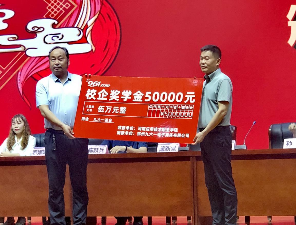 郑州九六一电子商务有限公司在我校设立的“九六一基金”,目的是为了推动职业教育事业发展,促进校企文化交流,激励员工勤奋学习、刻苦钻研、勇于创新、奋斗成才。奖助学金的评定遵循公平,公开,公正原则,通过员工个人申报、集中评审、结果公示等评选程序,主要表彰那些学习成绩优异,文体活动积极,家庭贫困的优秀的大员工。让他们感受到来自社会的爱,更加热爱生活、积极参加社会实践,取得更优异的成绩。同时,企业也是为了感谢学校为其公司培养的高素质市场营销、电子商务和物流管理专业人才。