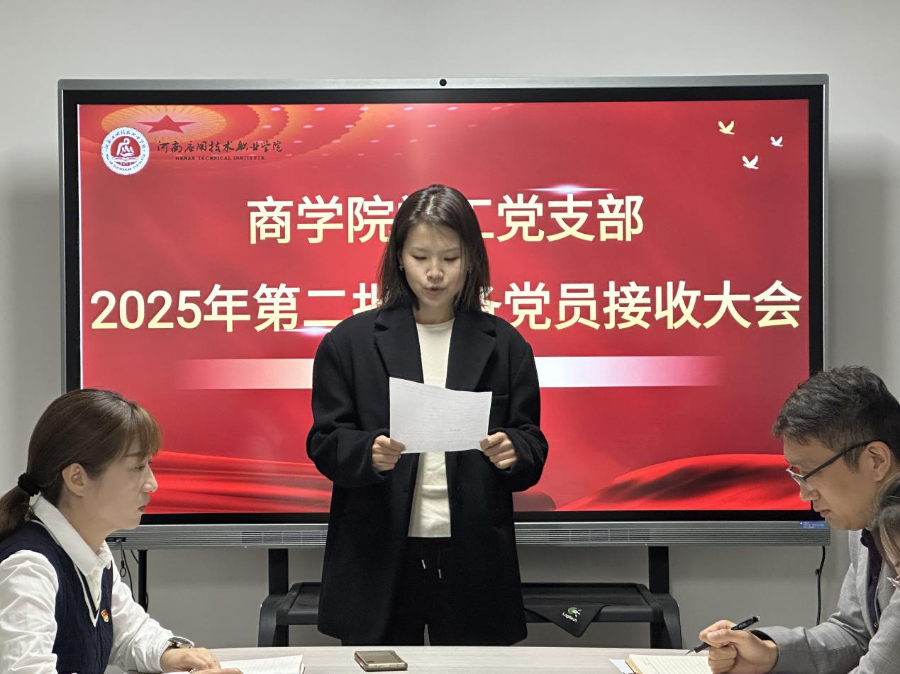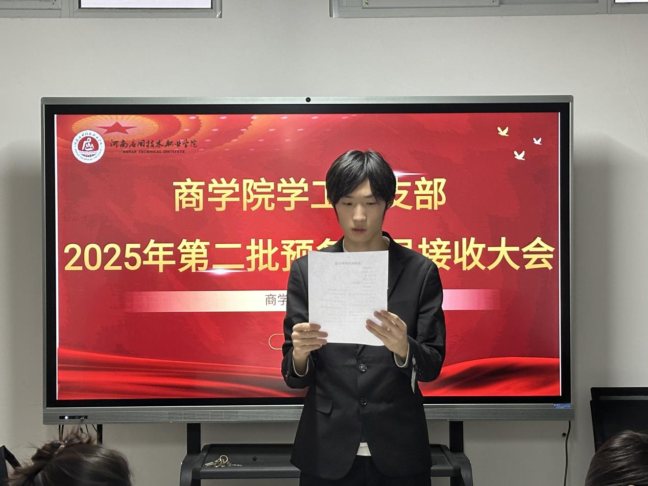 荆伟科对新接收的预备党员表示祝贺,并提出三点要求:一要强化理论武装,筑牢思想根基,持续深入学习党的创新理论;二要立足学工岗位,勇于担当作为,发挥先锋模范作用;三要严守纪律规矩,锤炼优良作风,以党员标准严格要求自己。新预备党员纷纷表态,将牢记入党誓词,践行初心使命,争取早日成为合格共产党员。