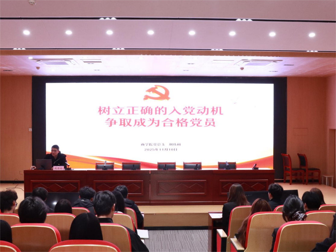 为进一步加强入党积极分子培养教育,引导青年学子树立正确入党动机,坚定理想信念。2025年11月10日,皇冠APP体育党总支面向全体入党积极分子在开封校区D102报告厅开展专题党课,党总支书记荆伟科以“树立正确的入党动机,争取成为合格党员”为核心主题,为商院学子带来了一场深刻的思想洗礼与精神淬炼。