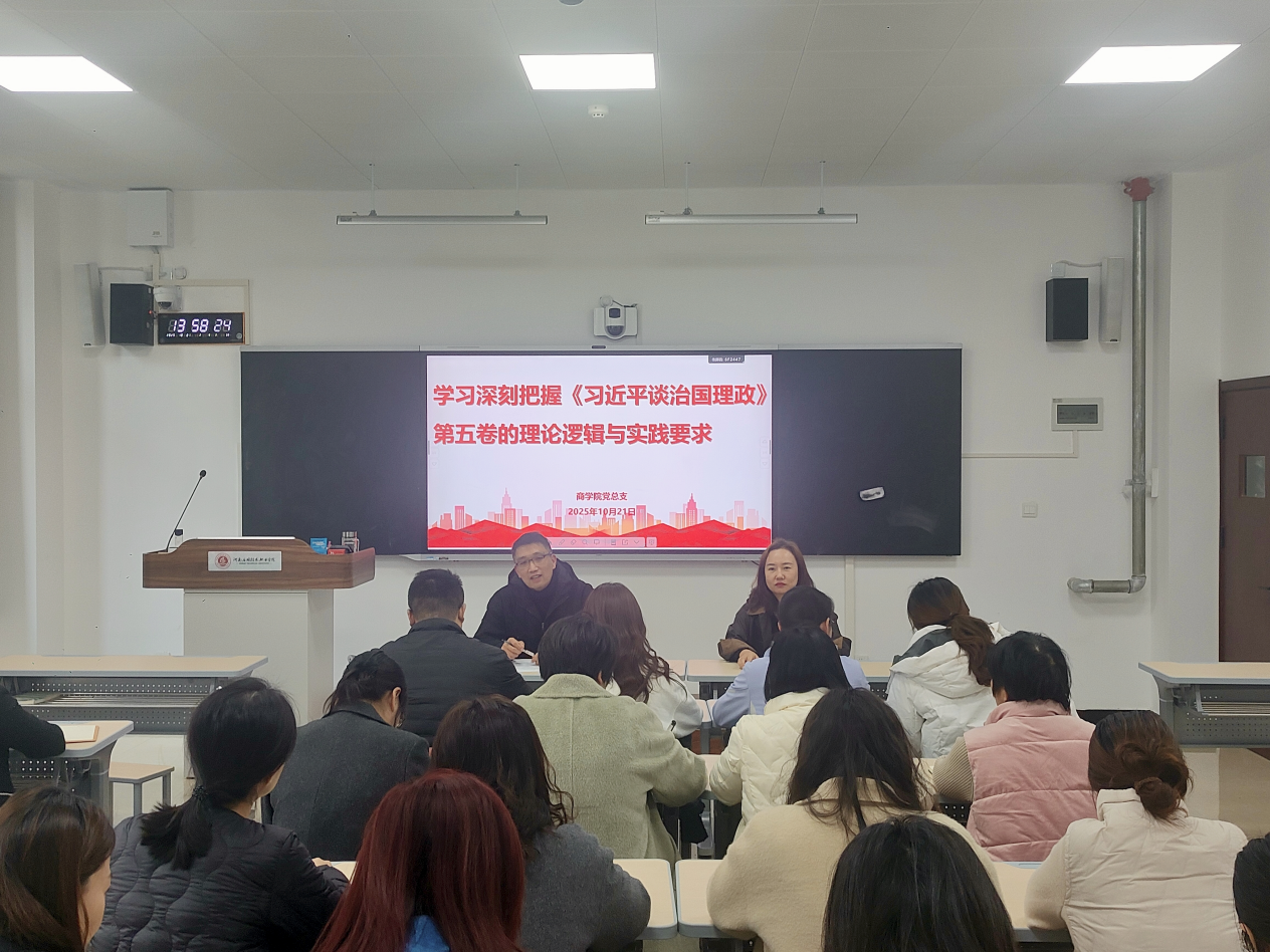 荆伟科在总结中提出三点要求:一是全体教师要把《习近平谈治国理政》第五卷学习作为长期政治任务,通过个人自学、支部研讨等形式,持续深化理论理解;二是要立足商科专业特色,找准理论与实践的结合点,将中国式现代化理念融入日常教学和员工管理活动中;三是要以学习成果推动工作实效,把理论学习中汲取的力量转化为提升教学质量、服务员工成长的实际行动。
