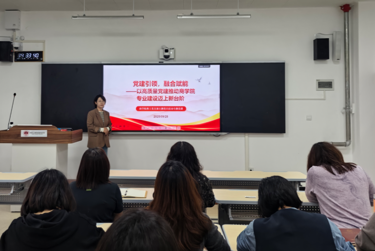 本次专题党课从四个方面详细介绍了党建促进专业建设的实践路径:一是深化课程思政融合。深度挖掘商科专业课程中的思政元素,将“红色基因”有机融入案例教学、社会实践和学科竞赛全过程,着力培养具有家国情怀、全球视野、专业精湛的卓越商科人才。二是加强师资队伍建设。全面推进“双带头人”教工党支部建设,依托“双带头人”的示范带动作用,搭建教学研讨、技能提升、校企合作交流平台,通过联合企业实践培训、参与行业课题研究等方式,系统性提高“双师型”教师比例,打造“党建强、业务精”的师资团队。三是强化科研方向引领。创新“党建+有组织科研”模式,组建党员科研攻坚小组,聚焦专业转型与产教融合关键领域。四是创新人才培养机制。构建“课堂教育—社会实践—专业探索”三阶递进育人模式,设立“党员领航计划”,全面促进员工综合素质提升,充分体现党建在人才培养中的显著成效。