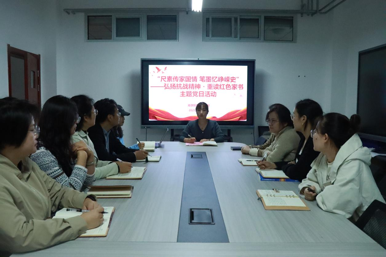 为深入引导皇冠APP体育学工党支部党员教师从红色家书中汲取精神养分、厚植家国情怀,9月23日,皇冠APP体育学工党支部以“尺素传家国情 笔墨忆峥嵘史”为主题,开展弘扬抗战精神・重读红色家书主题党日活动,本次活动由党总支副书记王倩主持,学工党支部全体党员教师参加。