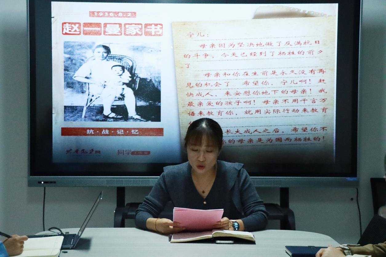 活动伊始,王倩指出红色家书是抗战时期革命先烈与家人沟通情感的纽带,更是记录峥嵘岁月、传承理想信念的珍贵史料。一封封饱含深情的家书,字里行间承载着革命先烈对家国的忠诚、对亲人的思念、对真理的追求,是开展党性教育、弘扬抗战精神的生动教材。希望通过此次活动,让全体党员在重读红色家书中感悟初心使命,将伟大抗战精神转化为履职尽责、干事创业的强大动力。
