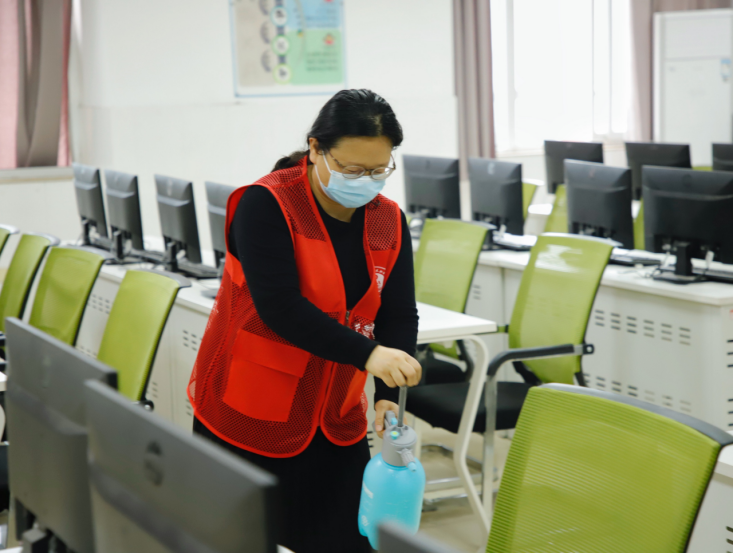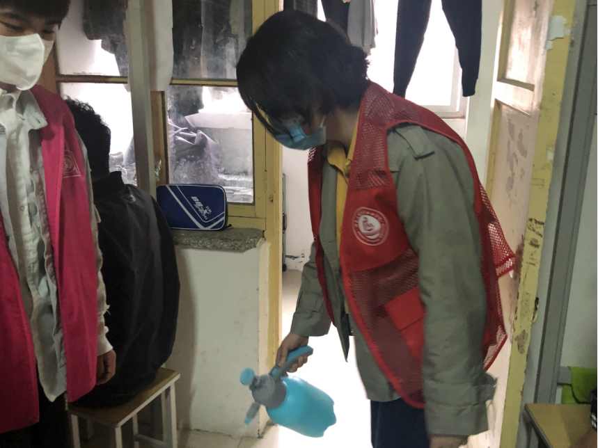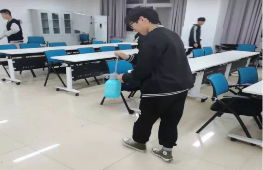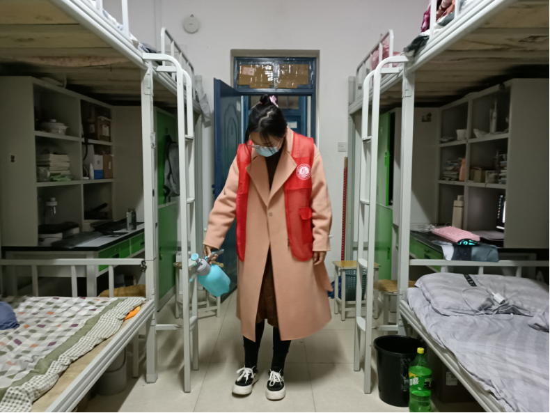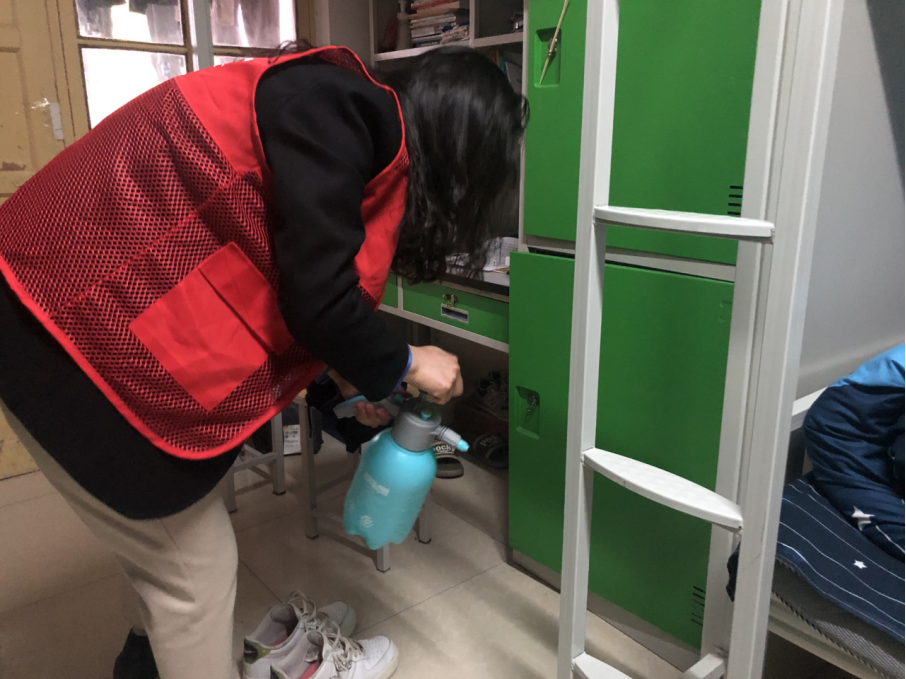 皇冠APP体育教工党支部和员工党支部分别深入实训室、员工宿舍开展消杀工作。党员教师在员工宿舍开展安全隐患排查、对员工宿舍进行细致的消杀,了解员工需求,帮助员工保持积极乐观心态,平稳度过特殊时期。