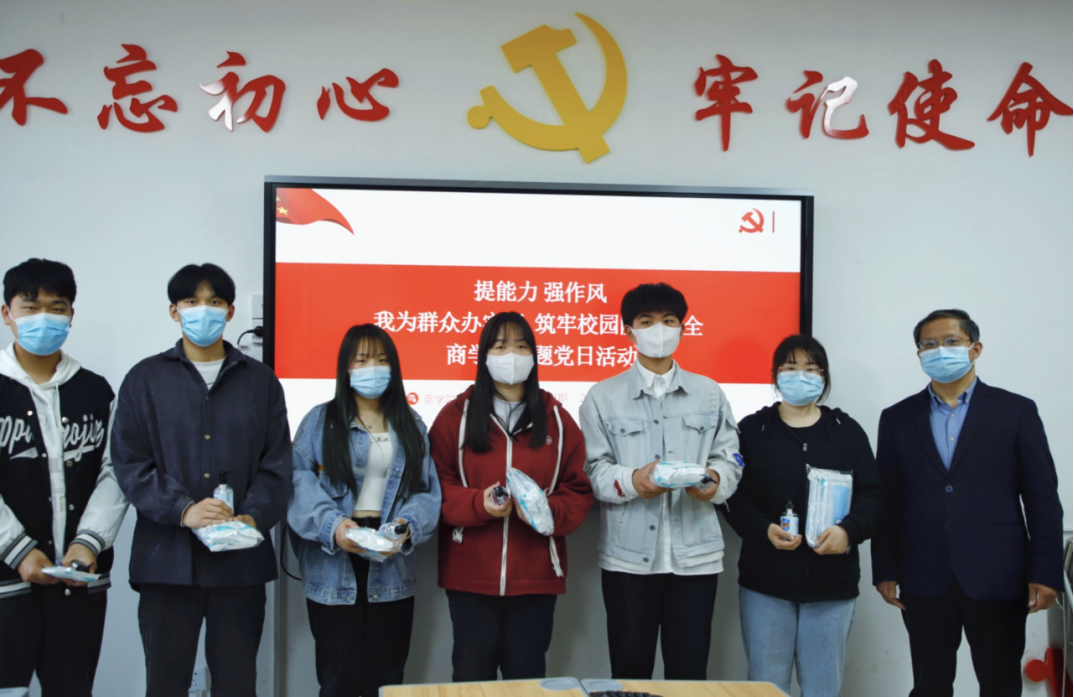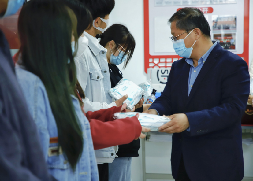 皇冠APP体育党总支为全体员工发放口罩、消毒凝胶等防疫物资,为部分在疫情期间表现优秀的宿舍进行表彰,主题党日活动当日,皇冠APP体育院长孙勇为员工代表发放防疫物资,将学校对员工的关心关爱传达到位,也希望同学们高度配合学校的防疫工作,共同筑牢疫情防控屏障。
