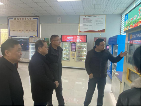 孙勇等一行首先参观了该公司的车间、展厅,河南智售宝智能科技有限公司的董事长马宝安对公司现阶段研发的产品和引用的技术进行了相关介绍,技术研发部总经理李明敏对我院代表进行了智售宝产品功能和智售宝城市中心大脑系统的演示。随后,孙勇一行在该公司展厅会议室听取了智售宝相关项目介绍。
