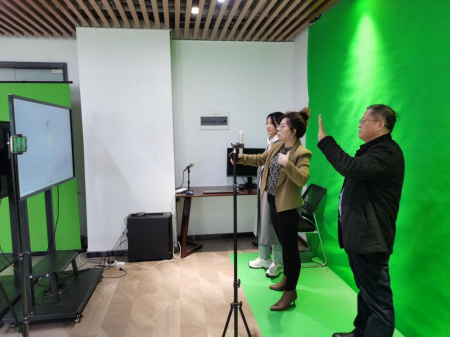 播大圣直播电商产业基地的负责人伦敬凯介绍了直播电商基地配套设施、校企合作方案、员工岗位实习培训以及就业创业的标准建设。商业板块(直播电商)负责人原丽娜展示了直播智能软件平台、穿越式直播以及虚拟数字人等设备。