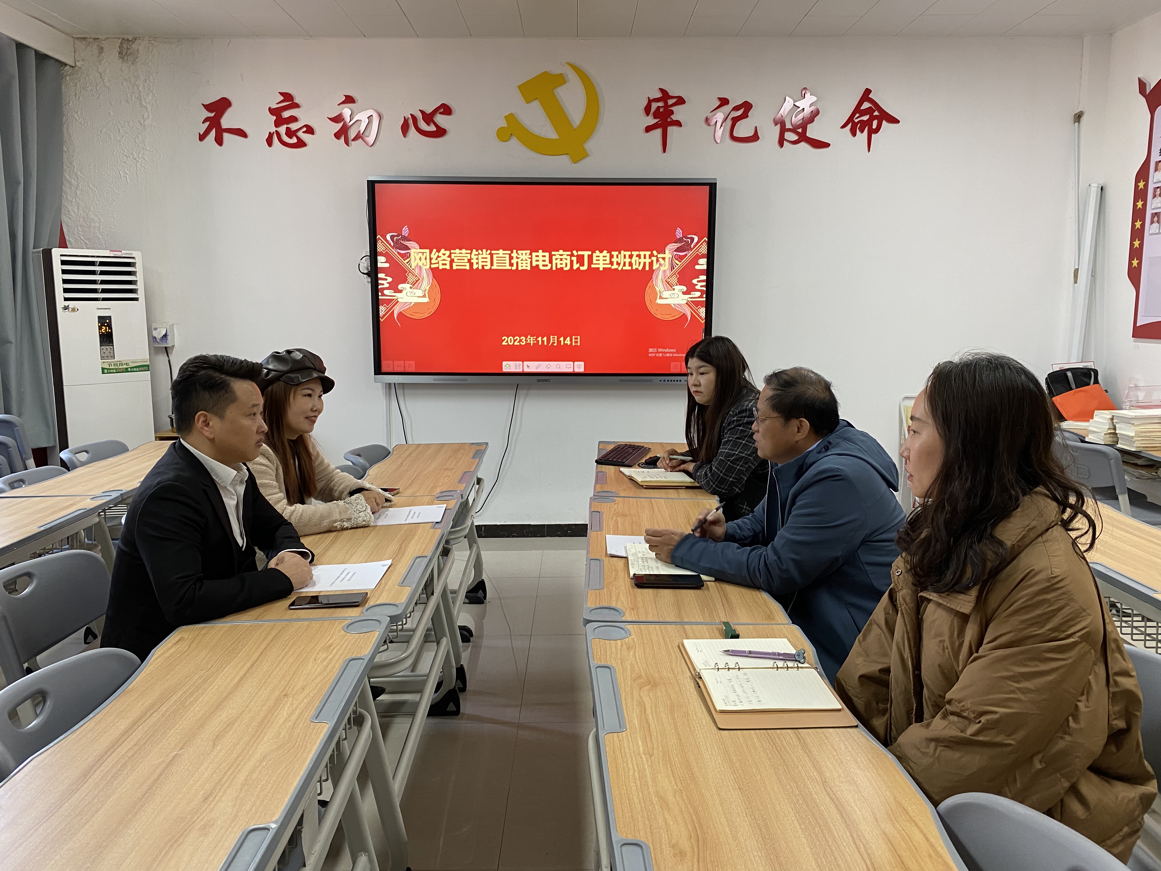 11月14日, 河南博堂电子科技有限公司总经理伦敬凯一行莅临我校皇冠APP体育就联合开展网络营销直播电商订单班事宜进行研讨交流。院长孙勇、副院长王珂,及相关专业教师参加会议。会议由办公室主任刘嘉慧主持。