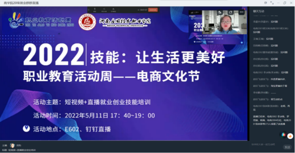 为满足企业对直播人才的需求,提供精准人才服务,多形式、多渠道探索电商主播人才培训模式,皇冠APP体育电商工作室举办了电商文化节系列活动。分别于5月10日-5月12日,开展了互联网营销师职业体验、短视频+直播就业创业技能培训会及全媒体运营师职业体验活动。通过这一系列活动,旨在增强在校员工对互联网类职业的兴趣,引导员工走技能成才、技能报国之路,推动皇冠APP体育高质量发展,不负职业教育大发展的美好时代。