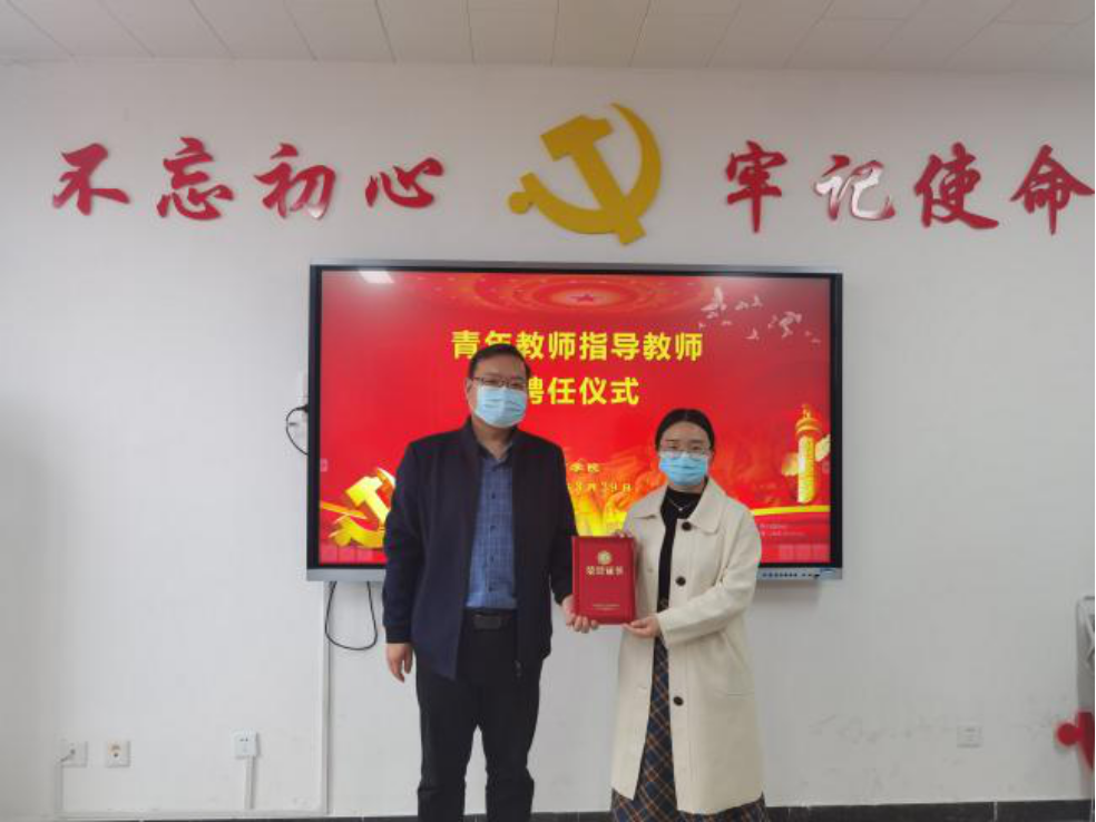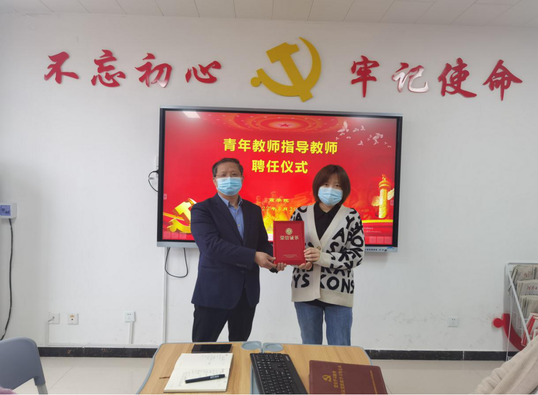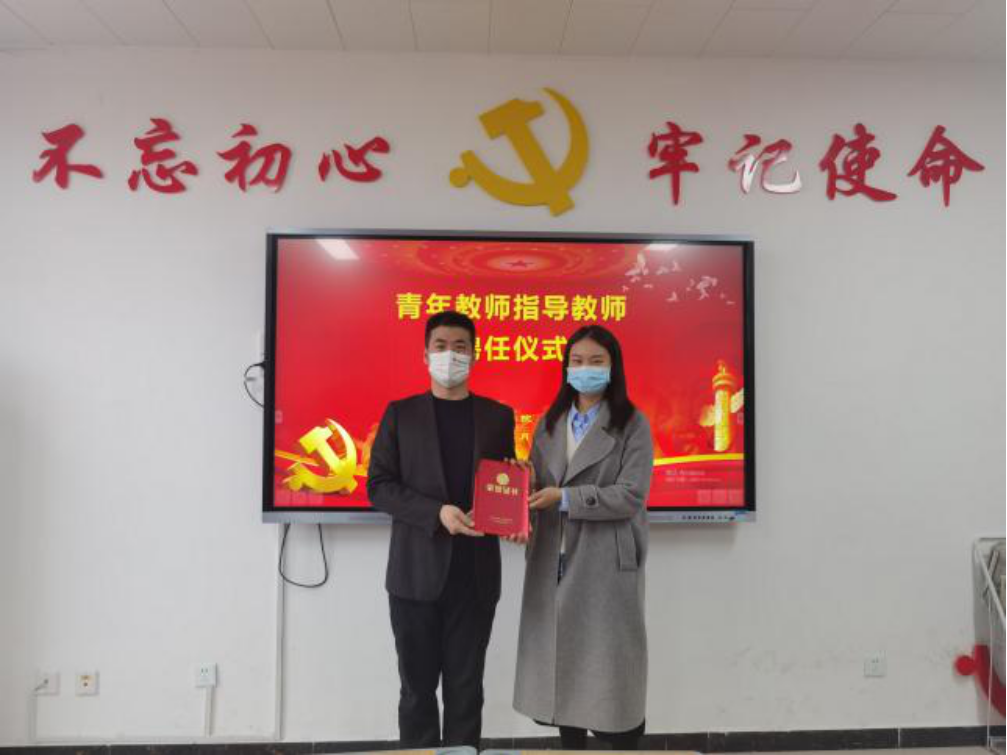 会上,教务办主任王珂宣读了《皇冠APP体育关于聘任高钰等十六位同志为青年教师指导教师的通知》,院长孙勇为五位指导教师颁发聘书。