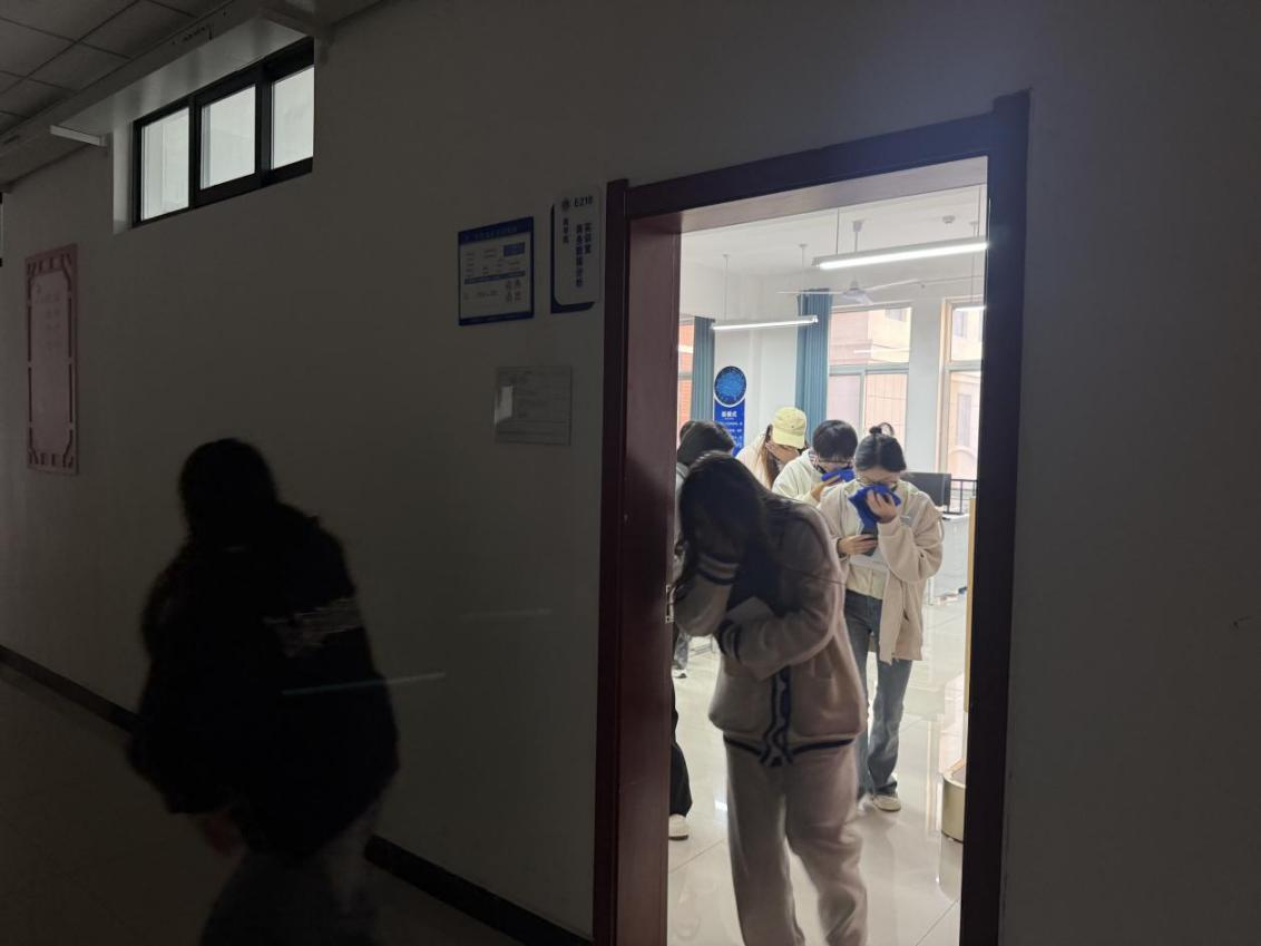 此次演练以实训室“线路短路起火”为场景,员工在教师的指导下快速响应,按照“低腰、湿毛巾捂住口鼻”的逃生要领,沿着预设安全通道快速撤离,全程保持安静有序,顺利抵达楼前安全空旷区域,完成疏散集结。