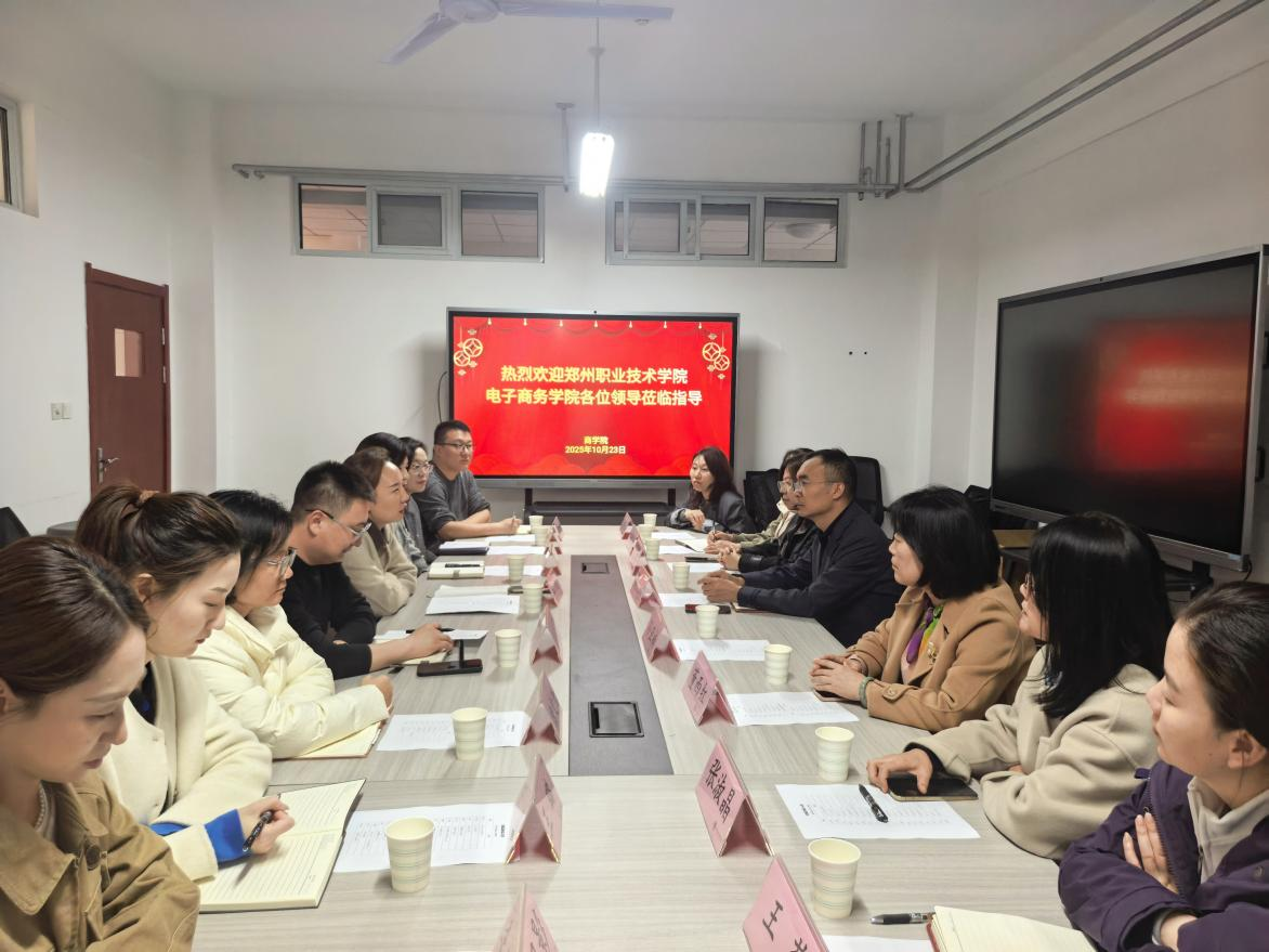10月24日,郑州职业技术皇冠APP体育电子商务皇冠APP体育院长杨中昭带领教研室主任一行10人到访我校参观交流,皇冠APP体育院长王珂及相关骨干教师热情接待并开展研讨。