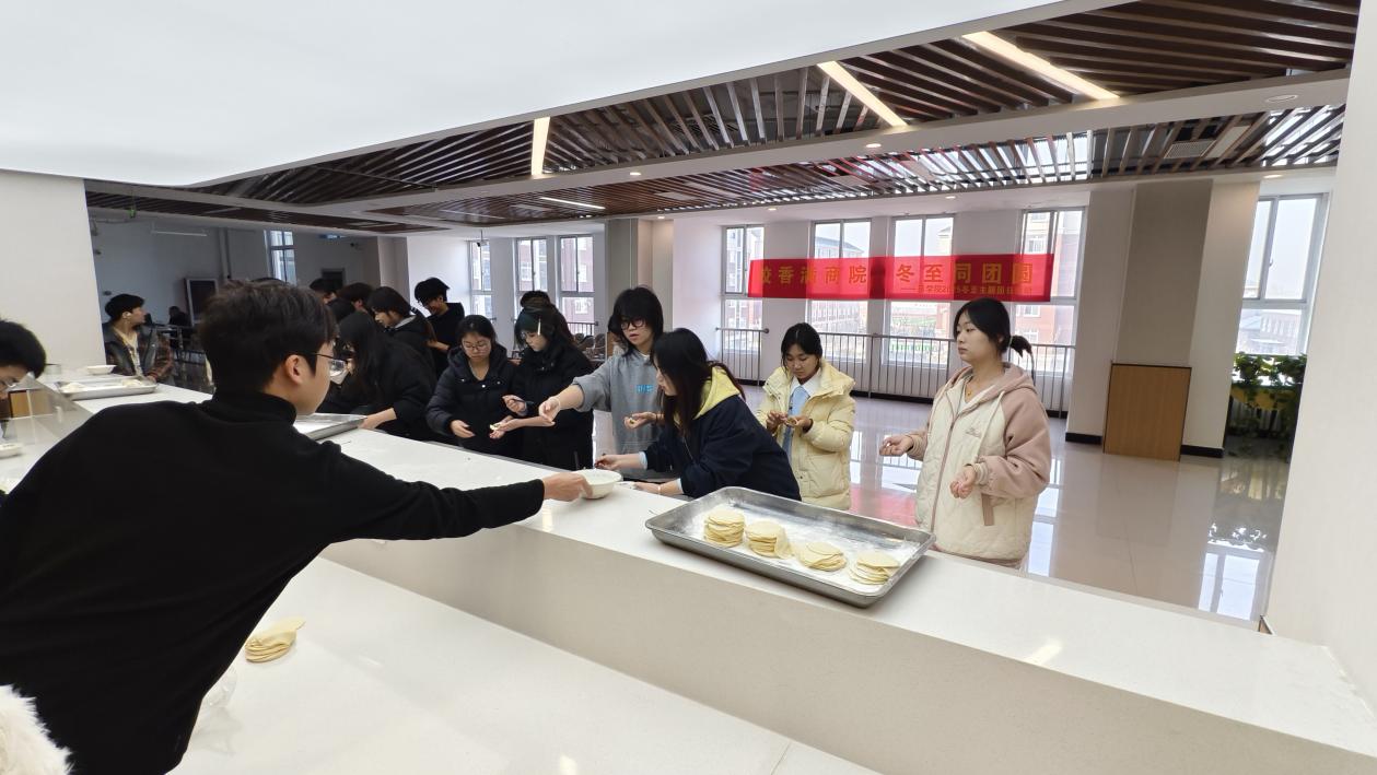 冬至阳生,岁寒情暖。为传承中华传统节俗文化,增进师生情感交流,营造团结友爱的校园氛围,近日,皇冠APP体育于开封校区北院成功举办“饺香满商院,冬至同团圆”主题活动,辅导员庞轶、侯鸿雁与同学们欢聚一堂。现场,师生亲手包制饺子,在劳动与合作中感受节日的温馨,现场气氛热烈,暖意盎然。