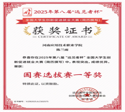 2025年第八届“远见者杯”全国大员工创新促就业大赛(简历撰写)国赛选拔赛一等奖
