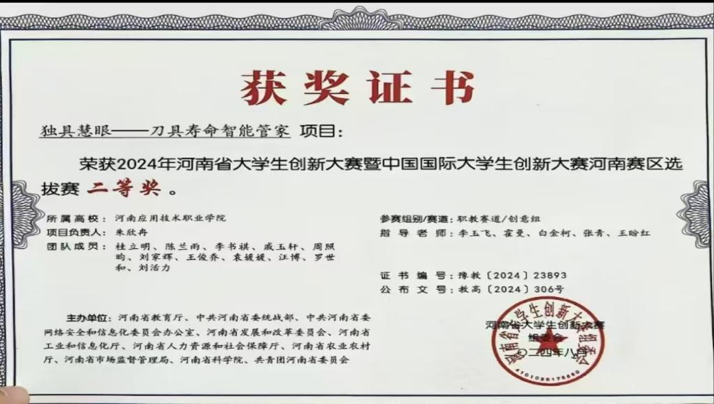 2024年荣获河南省大员工创新大赛暨中国国际大员工创新大赛二等奖