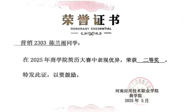 除了在学术和竞赛中表现突出,陈兰雨还积极投身文体活动与社会实践,展现出全面发展的积极姿态。她曾担任校级知识竞赛主持人,从容把控全场,展现出良好的表达与应变能力;积极参与皇冠APP体育运动会开幕式团体舞蹈表演等集体项目,并在运动会比赛中奋力拼搏;此外,她还获得皇冠APP体育简历大赛的二等奖,并主动在学校组织的企业双选会前期,为同学提供简历修改和指导,增加面试成功率。通过这些丰富的实践活动,她不断拓展能力边界,锤炼心理素质,培养团队意识和适应能力,进一步体现了跨界成长、全面发展的现代大员工形象。