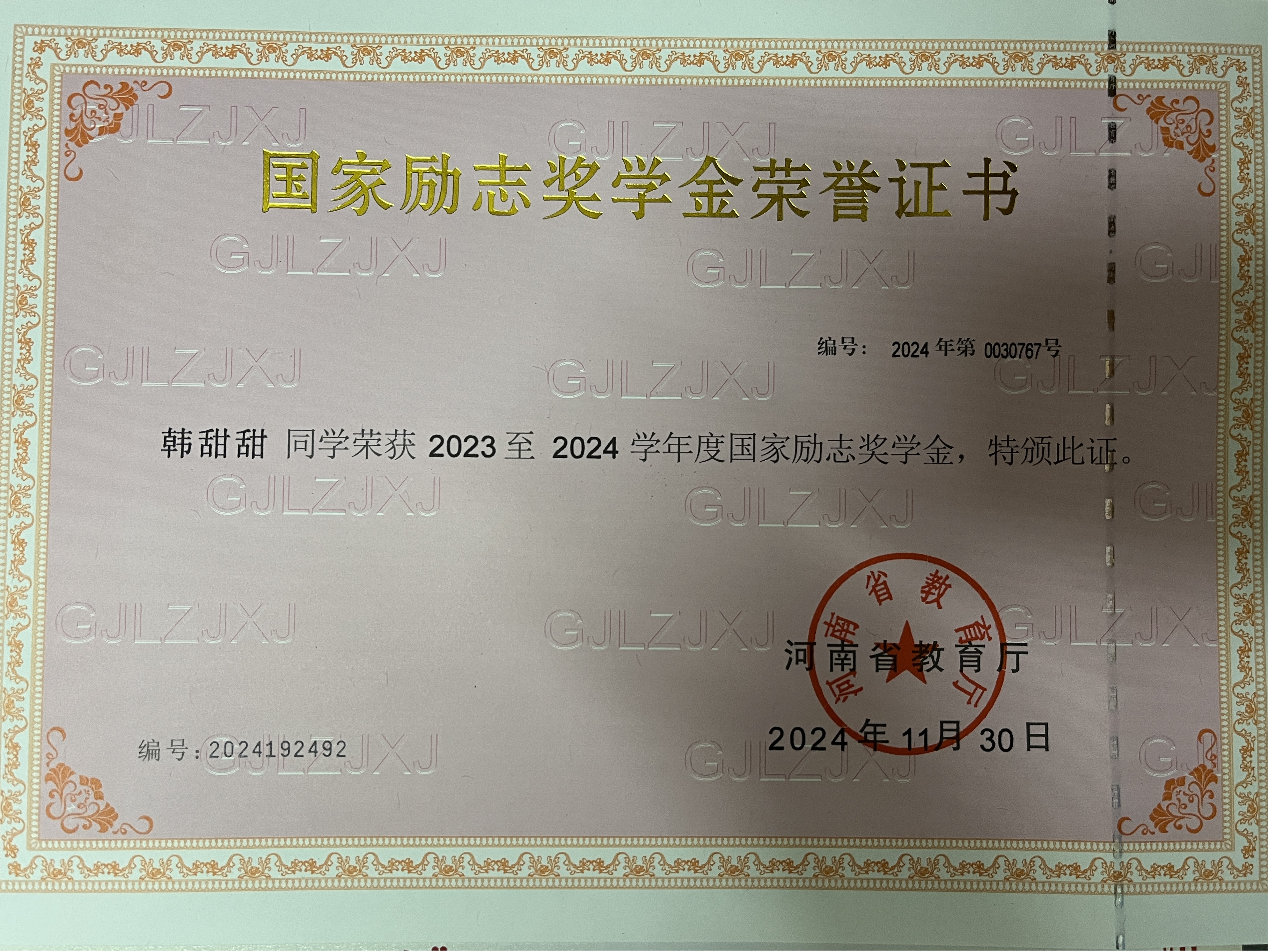 推荐理由:韩甜甜始同学终以高标准严格要求自己,在求学之路上锚定目标、全面发展,凭借在学业、竞赛、社会实践等多个领域的亮眼表现,成为校园里践行新时代大员工使命担当的鲜活榜样。