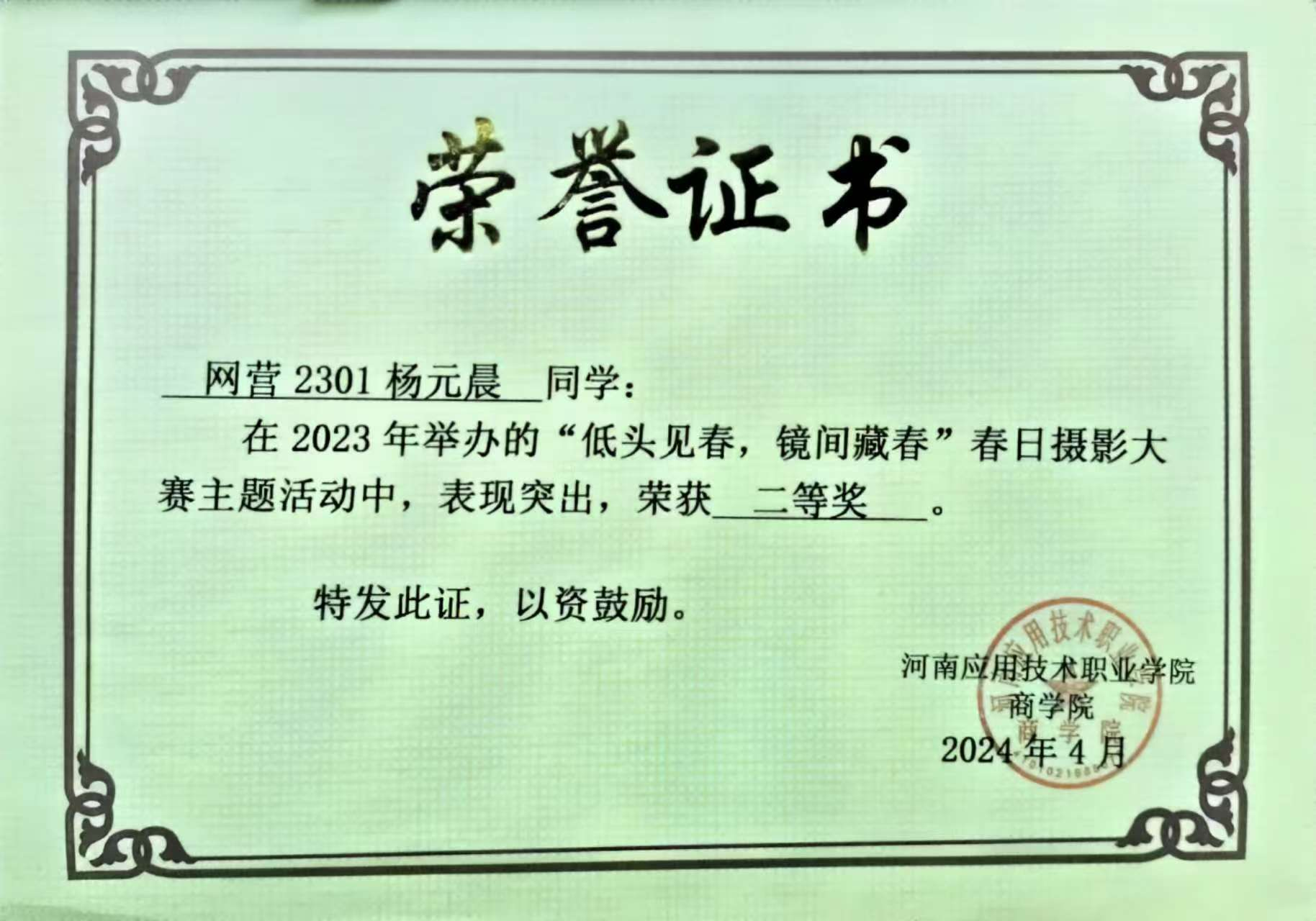 在校园内,她时常穿梭于课堂、社团活动室和志愿服务现场,始终以身兼力行为标尺,将当代青年的责任扛在肩头、担当融入日常,在每一次实践中诠释青春应有的模样。在班内,她担任团支书一职,始终以身作则,积极配合辅导员完成各项工作,定期组织主题团日活动,增强班级内凝聚力,提升同学们在思想上和行为上的觉悟;在校内,她担任青年宣传部部长和电子商务协会副社长一职,在任职青年宣传部的部长期间,她带领团队及时撰写新闻稿件并播报校内事件新闻、配合学校各项有关考试宣传、协助并成功执行“同升国旗 齐唱国歌”和“豫你相应正当时,挺膺担当向未来”等多项大型校园活动;而在任职电子商务协会副会长期间,在老师的指导下她带领团队参与多项省级技能竞赛,有效提升社员的动手实操及创新精神。