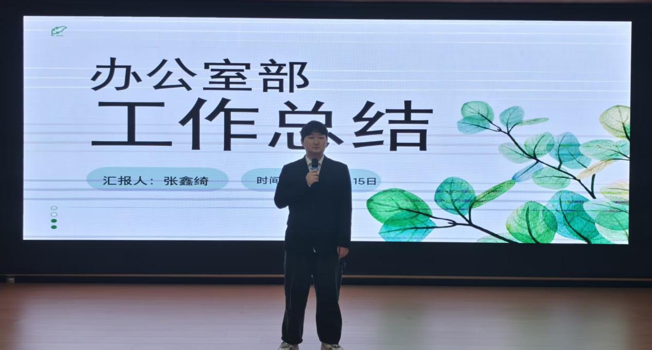 各部门述职结束后,主席团成员进行总结发言。从统筹协调、活动开展、队伍建设三个维度回顾了员工会全年工作,既肯定了各部门的亮眼成绩,也直面部员成长梯队建设不完善、跨部门活动联动性较弱等问题,并提出针对性改进方向。