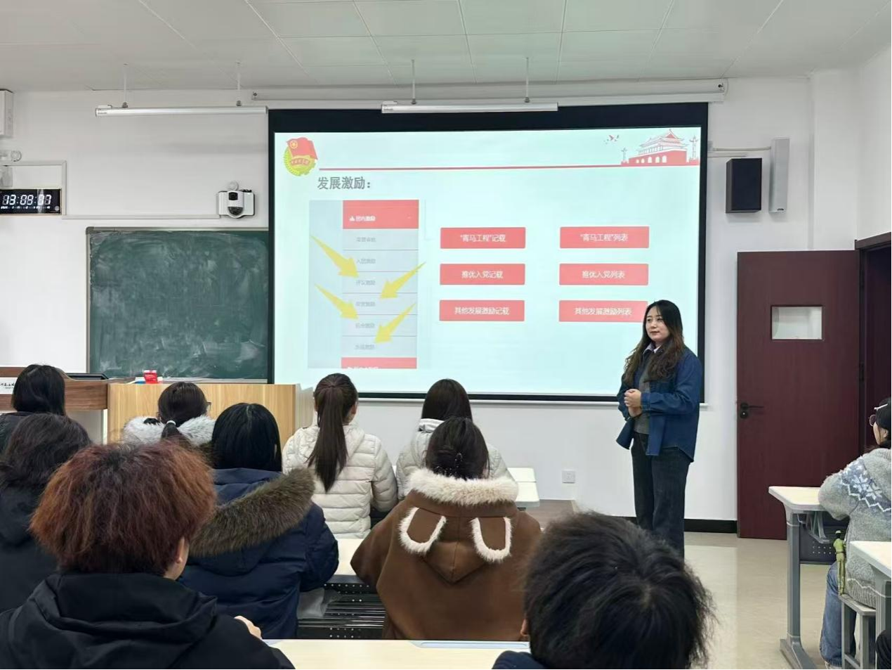 此外,她通过关键步骤拆解,详细讲解团员发展工作全流程,以及推优入党条件与程序。还对智慧团建系统中荣誉激励、机会激励、发展激励等模块的信息录入规范进行了说明,包括个人与集体荣誉记载、团代表与其他机会记载等操作要点。通过条理清晰的讲解,为团干部理清了工作脉络与实操要求。