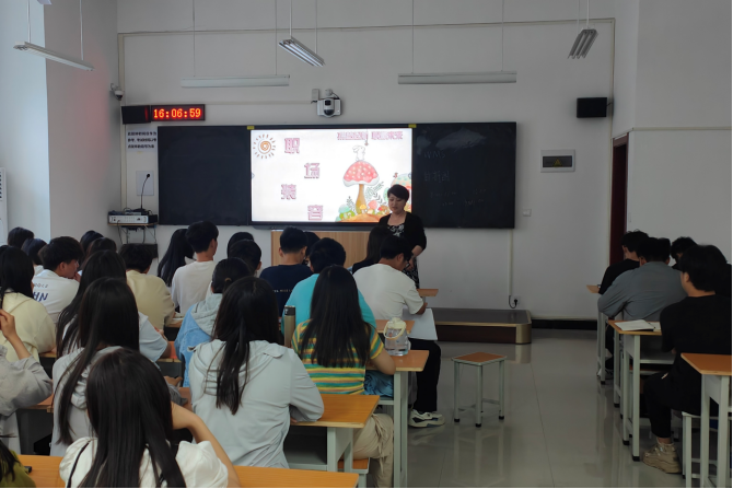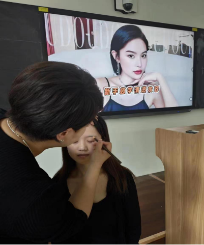 首先,庞轶将妆容理论知识和妆容示范两者结合起来,带领大家一边学习知识一边进行示范。并邀请班级同学作为模特为同学们进行妆容示范。在化妆之前,老师强调妆前要精简护肤,并且告诉大家皮肤保湿的重要性。然后从粉底液的选择、用刷子的手法、眉毛、眼影、睫毛、鼻影、侧影、口红等全方面进行了教学。
